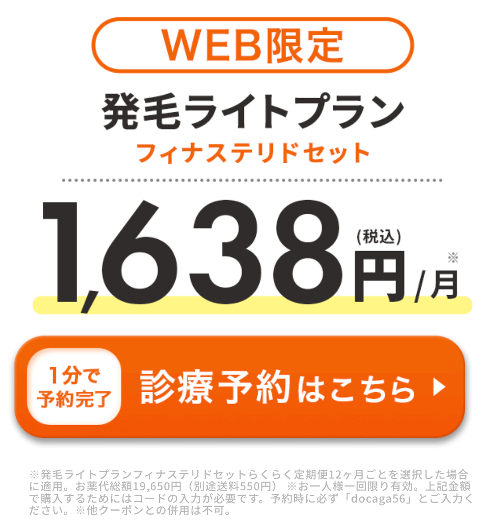 | 発毛ライトプラン (フィナステリドセット) | 50%以上割引 |